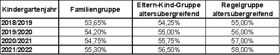 - Altersübergreifende Gruppen in Regeleinrichtungen freier Träger: entsprechend Kindergartengruppe