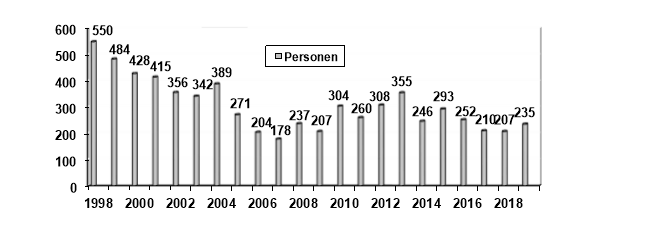 Im Jahr 2019 wurden 235 Personen (Vorjahr: 207 Personen) in Wohnungslosen-einrichtungen der Stadt Braunschweig aufgenommen, 218 Personen (Vorjahr: 245 Personen) haben die Unterkünfte im selben Zeitraum verlassen und wurden z.B. mit Wohnraum versorgt.