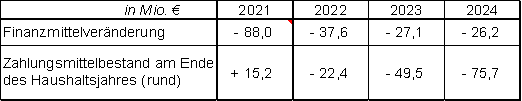 Im Finanzhaushalt war als Bestand an Zahlungsmitteln in der Hauptvorlage bereits ein aktueller Betrag von 103,2 Mio. € eingerechnet.