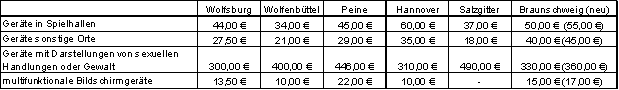 Derzeit stellen sich die Steuersätze für Spielgeräte ohne Gewinnmöglichkeit im Vergleich zu anderen Kommunen wie folgt dar: