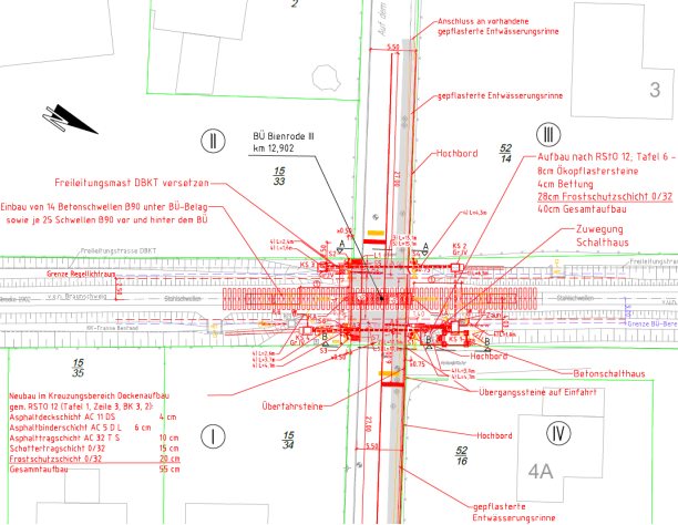 Abbildung 1: Kreuzungsplan Bahnübergang BÜ I – Auf dem Anger