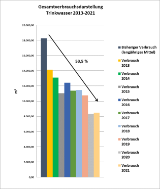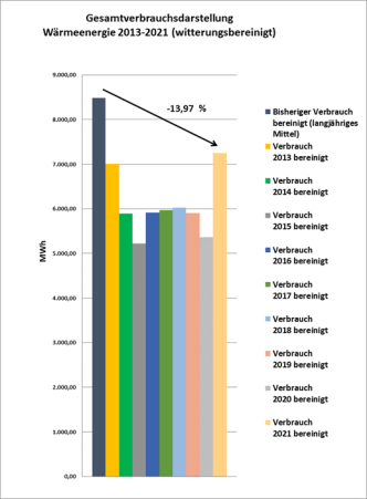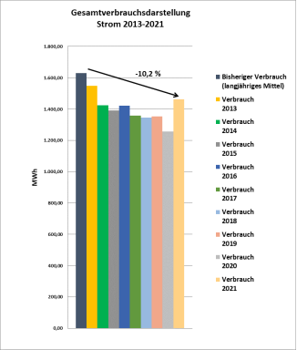 Vergleich des bisherigen Verbrauchs aus dem langjährigen Mittel zum Projektbeginn gegenüber dem Verbrauch der Jahre 2013 - 2021