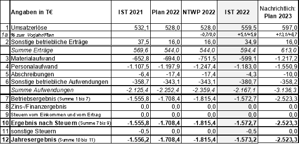 Der Jahresabschluss 2022 der Gesellschaft weist (vor Verlustübernahme durch die Stadt)