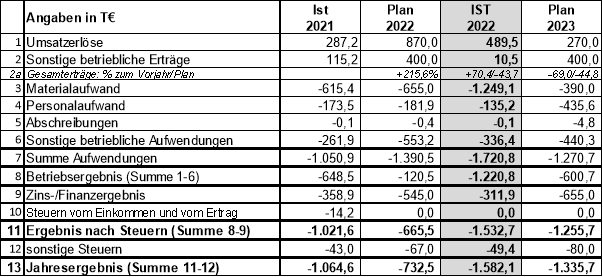 ab. Der Wirtschaftsplan 2022 sah einen Fehlbetrag in Höhe von 732.500,00 € vor.