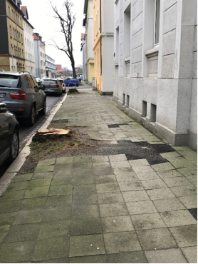 Bäume streben im Zuge ihrer Entwicklung danach, das bereitgestellten Volumen der Pflanzgruben zu erschließen. Aus den o.g. Gründen wird in Bestandsbaumscheiben jedoch nicht ausreichend durchwurzelbarer Raum zur Verfügung gestellt. Die Wurzeln dringen daher häufig in benachbarte öffentliche und private Flächen ein. Dazu nutzen sie luftführende Tragschichten unter Kfz-Stellplätzen, Geh- und Radwegen, Fugenräume unter und zwischen Plattenbelägen und Borden, Leitungsbettungen sowie - mit weiterem Fortschreiten des Wachstums - auch anliegende Gärten und befestigte Flächen sowie wasserführende Rohrleitungen. Die entstehenden Schäden an der Infrastruktur (vgl. Abbildung) können die Verkehrs- und Versorgungssicherheit (Stolperfallen, beschädigte Leitungen) einschränken. Reparaturen sind oft nur im Zusammenhang mit Tiefbau- und Leitungsarbeiten möglich.