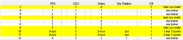 Bei 3, 6, 9, 10 und 11 Gesamtvorschlagsrechten ergeben sich danach Veränderungen bei der Mandatsverteilung.