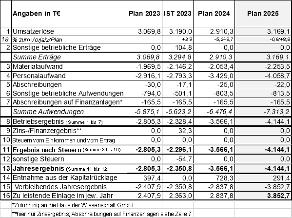 Der Wirtschaftsplan 2025 der Haus der Wissenschaft Braunschweig GmbH (HdW) ist der
