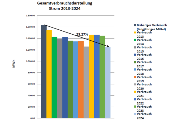 Vergleich des bisherigen Verbrauchs aus dem langjährigen Mittel zum Projektbeginn gegenüber dem Verbrauch der Jahre 2013-2024