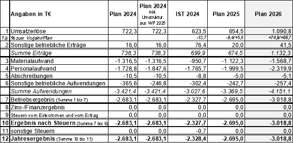 Veränderungen gegenüber dem Plan 2025 ergeben sich insbesondere durch das neue große Projekt „Hightech-Inkubator“, sowohl bei den Aufwendungen (Materialaufwand und Personalaufwand) als auch bei den Erlösen (Vereinnahmung Fördermittel), was zumindest teilkompensierend wirkt. Durch diverse Aufwandsreduzierungen an unterschiedlichen Stellen konnte der Zuschussbedarf aus der Mittelfristplanung der BZG (demgemäß haushaltsmäßig für das Jahr 2026 veranschlagt wurde) gehalten werden.