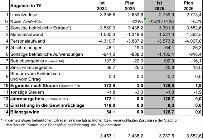 Im Fehlbetrag enthalten sind Erträge in Höhe von 165 T€ aus der Auflösung der sog. SodEG-Rückstellung aus dem Jahr 2021 sowie in Höhe von 75 T€ aus dem Jahr 2022.