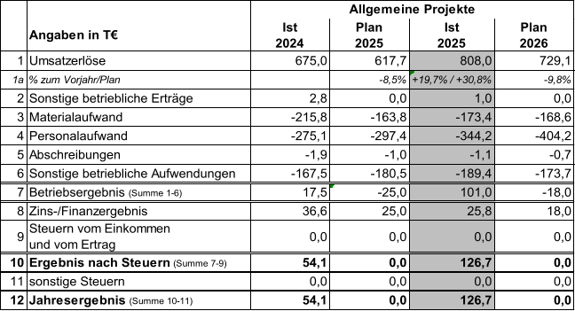 Das Volumen im Bereich „Allgemeine Projekte“ hat sich im Vergleich zum Plan verbessert.