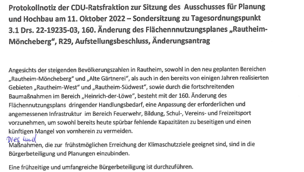„1. Für das im Betreff genannte und in Anlage 2 dargestellte Stadtgebiet wird die Aufstellung der 160. Änderung des Flächennutzungsplanes „Rautheim-Möncheberg" beschlossen.