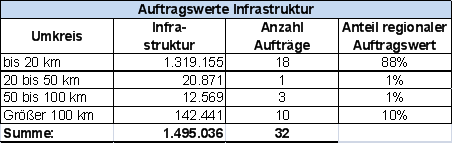 Insgesamt wurden 76 % der Aufträge von lokal ansässigen Firmen mit Sitz in einem Umkreis von max. 20 km um Braunschweig abgewickelt. Insbesondere während der Betriebsphase ist die Einbindung lokaler Firmen für die Gewährleistung kurzer Reaktionszeiten und die Umsetzung der vertraglich geschuldeten Leistungen von hoher Bedeutung.