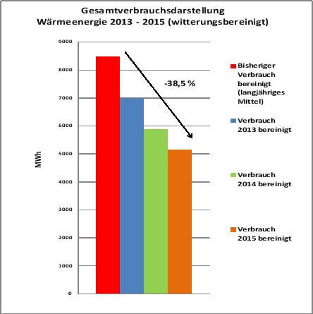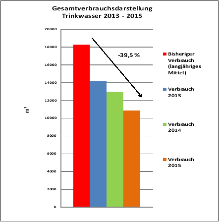 Vergleich des bisherigen Verbrauchs aus dem langjährigen Mittel zum Projektbeginn gegenüber dem Verbrauch der Jahre 2013 – 2015