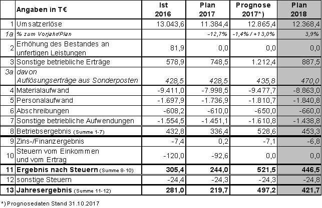 Bei einem prognostizierten Jahresergebnis in Höhe von 497,2 T€ für das Jahr 2017 ist deshalb eine Rücklagenbildung in Höhe von 300,0 T€ sowie eine Gewinnabführung an die SBBG in Höhe von 197,2 T€ geplant.