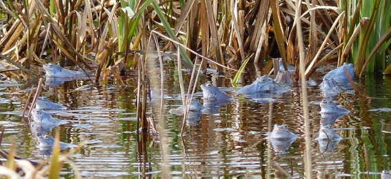 Moorfrösche mit blauer Balzfärbung.