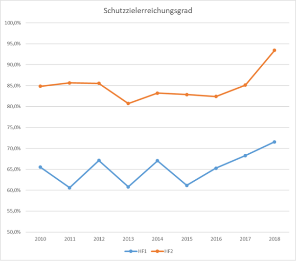 In der untenstehenden Tabelle sind die Schutzzielerreichungsgrade der Jahre 2010 bis 2018 dargestellt.