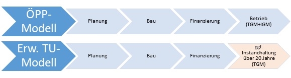 Die Wahl des TU-Modells erhöht gegenüber dem vollständigen ÖPP-Modell (mit Vergabe aller Betriebsleistungen) die Marktgängigkeit des Verfahrens.