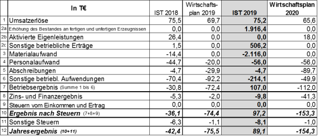 Der Jahresabschluss 2019 ist in Bilanz und Gewinn- und Verlustrechnung durch die ohne Prüfungsfeststellungen beendete Prüfung des Förderprojektes „AVIONIK-Cluster“ durch die NBank und dem Landesrechnungshof erfreulich positiv beeinflusst. Eine von der SFB als Projektträgerin eingestellte Risikoposition in Höhe von 501,2 T€ (Verbindlichkeit gegenüber der NBank) konnte danach ertragswirksam (enthalten in den sonstigen betrieblichen Erträgen) aufgelöst werden. Somit konnte u. a. auch die erwartete zukünftige Belastung der SFB durch Straßenausbaubeiträge im Jahr 2021 in Gesamthöhe von 218 T€, die aufwandswirksam den Rückstellungen zugeführt werden musste (davon im Jahr 2019