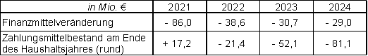 Veränderungen durch | Einzahlungen - € - | Auszahlungen - € - | Saldo - € - |