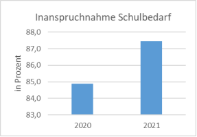 Für das Jahr 2020 ergibt sich eine Inanspruchnahme des Schulbedarfs in den Monaten Februar 2020 und August 2020 von 84,9 %.