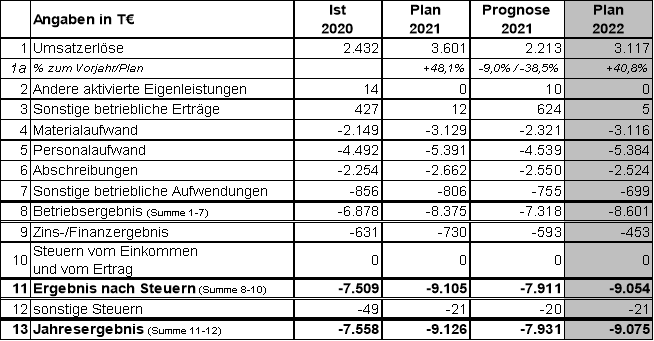 Im Vergleich zu den Daten der Jahre 2020 und 2021 stellen sich die Planzahlen wie folgt dar: