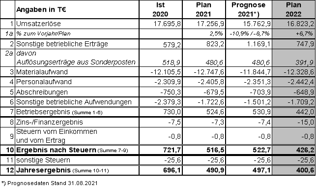 Im Vergleich zu den Daten der Jahre 2020 und 2021 stellen sich die Planzahlen wie folgt dar: