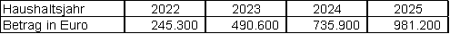 Ziffer 1 ‑ Aussetzen der Dynamisierung der Zuwendungen: Es entstünden Minderaufwendungen (ohne Zinseszinseffekt) in Höhe von