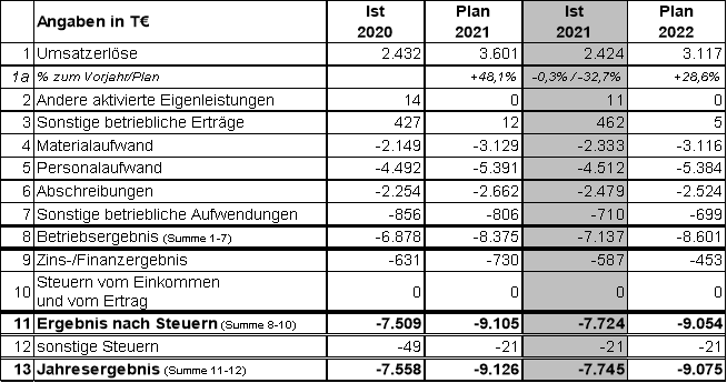 Mit den Erträgen aus Verlustübernahmen von 7.745 T€, die von den Gesellschafterinnen geleistet wurden, ergibt sich ein ausgeglichenes Jahresergebnis mit einem Jahresüberschuss von 0,00 €.