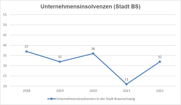 In Braunschweig ist die Zahl der Unternehmensinsolvenzen im Vergleich zum Vorjahreszeitraum um 11 (+52,4%) von 21 auf 32 angestiegen. Dabei handelt es sich um 9 Einzelunternehmen und 23 Gesellschaften mit beschränkter Haftung (GmbH und UG).