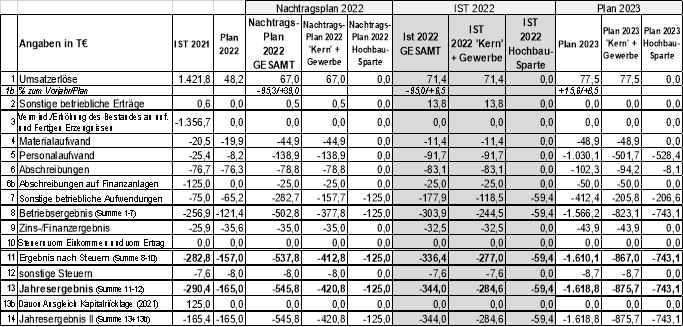 In der Gewinn- und Verlustrechnung 2022 wurde aus Gründen der Transparenz erstmals eine (der Planung entsprechende) spartengetrennte Aufteilung vorgenommen.