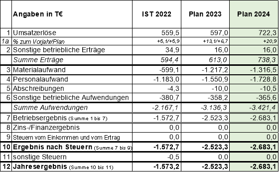 Gegenüber dem Vorjahresplan ergeben sich höhere Umsatzerlöse, da für das Projekt „W.IN“ weitere bzw. höhere Fördermittel veranschlagt werden können.