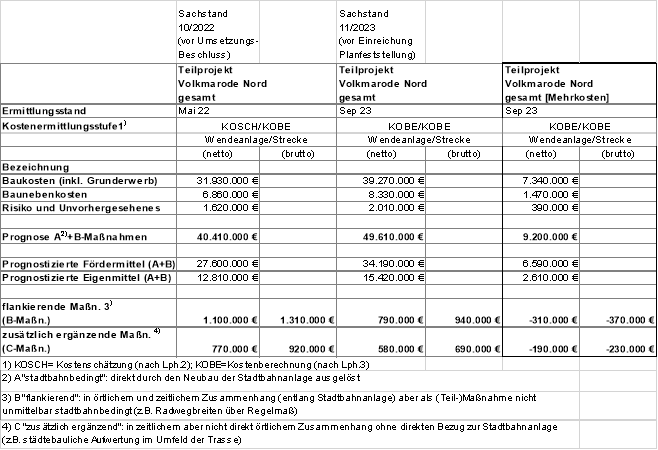 Stadtbahnausbauprojekt Volkmarode-Nord Kostenentwicklung und Folgekostenrechnung