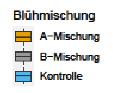 Zunahme der Blütendeckung gegenüber den Kontrollflächen (blau) zu sehen. In den Jahren 2021 und 2022 ist der Unterschied in den Samplingrunden 2 (Juni) und 3 (August) sehr deutlich. Im Jahr 2021 wurden auf weiteren Flächen eine zweite Saatgutmischung (BMischung, grau) ausgesät. Die Mischung hat bereits im ersten Standjahr im August eine positive Entwicklung der Blütendeckung gezeigt, die sich im zweiten Standjahr noch verstärkt gezeigt hat.