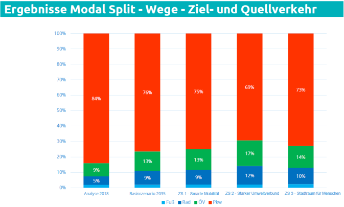 - Modal Split (Fuß, Rad, ÖV, MIV)