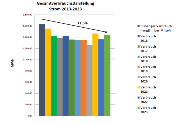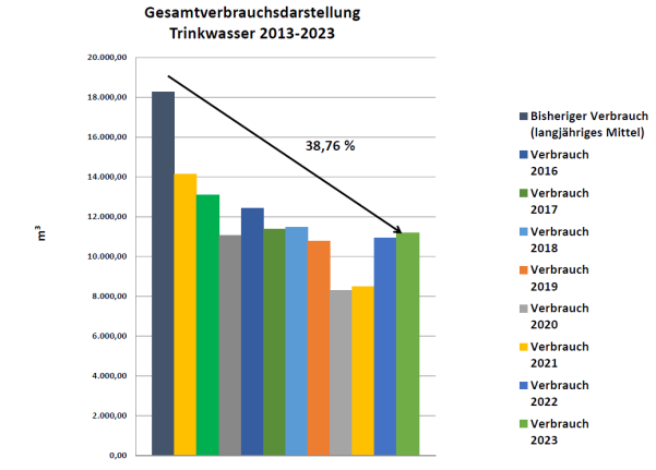 Vergleich des bisherigen Verbrauchs aus dem langjährigen Mittel zum Projektbeginn gegenüber dem Verbrauch der Jahre 2013-2022