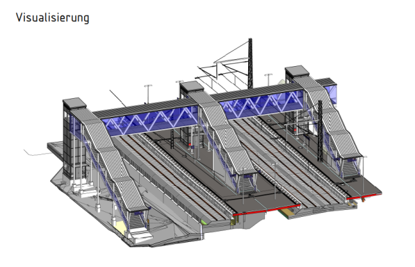 Abb. 2: 3D-Visualisierung der Personenüberführung am künftigen Haltepunkt West mit Verlängerung über die Marienberger Straße (Planung DB)