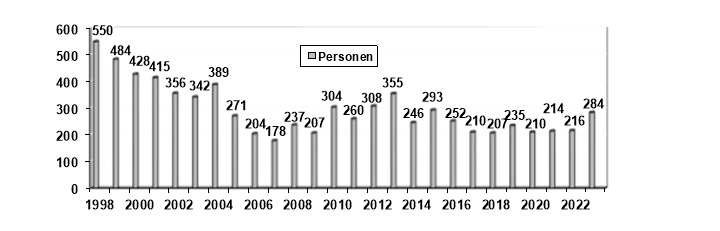 Die Entwicklung der vergangenen Jahre bezüglich der Einweisungen wohnungsloser Personen stellt sich wie folgt dar: