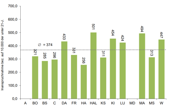 ernden und beendeten Hilfen bezogen auf 10.000 der unter 18-J.)[15]