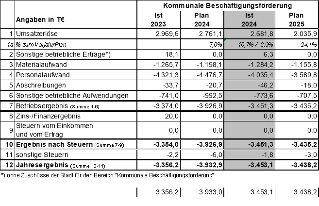 Das Ergebnis für den Bereich „Kommunale Beschäftigungsförderung“ fällt um 479,9 T€ besser aus als geplant. Der geplante Verlustausgleich wird entsprechend in dieser Höhe nicht benötigt.