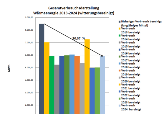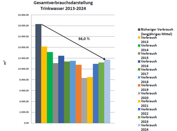 Vergleich des bisherigen Verbrauchs aus dem langjährigen Mittel zum Projektbeginn gegenüber dem Verbrauch der Jahre 2013-2024