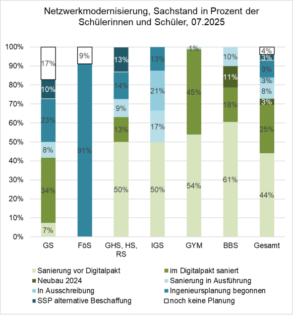 Insgesamt konnte die Datennetzmodernisierung bereits für 72 Prozent der Schülerinnen und Schüler umgesetzt werden.
