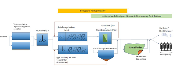 - die Potenziale aus Rieselfeld und der Verregnung werden durch die neue Belebung genutzt und führen zu einem optimierten Betrieb im Verbund der drei Komponenten;
